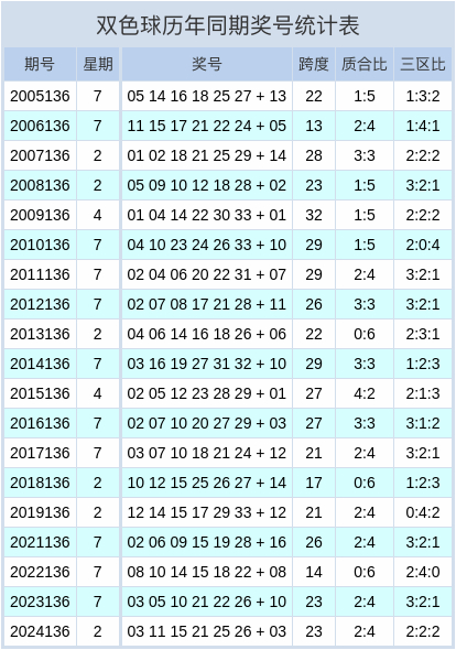 双色球历史同期奖号统计图